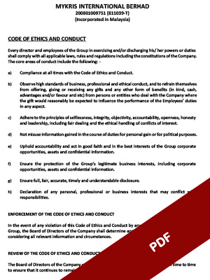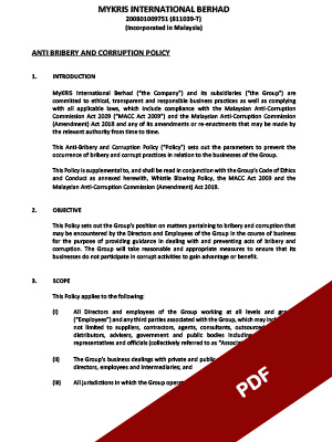 I/We confirm that have read and understand the Anti-Bribery and Corruption Policy (“Policy”) of MyKRIS International Berhad and undertake to abide by the provisions of the Policy directly or indirectly applicable to us.